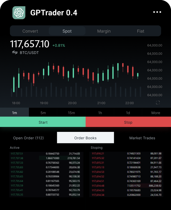 С использованием технологий искусственного интеллекта и алгоритмов треугольного моделирования, GPTrader спрогнозирует будущие движения цен активов в течение нескольких минут. Как только появляется перспективная возможность, модель автоматически проводит торговые операции, генерируя прибыль на вашем торговом счете. Этот современный подход позволяет эффективно реагировать на динамику рынка и максимизировать результативность в условиях быстро меняющейся финансовой среды.
